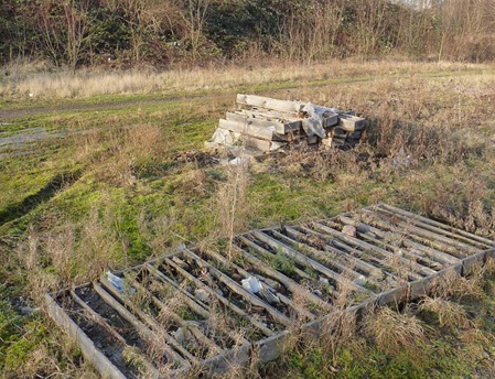 Förderbandreste, Folien, Holz, Beton, Geotex-Vliese und etc. nicht im zukünftigen Arbeitsbereich lagern