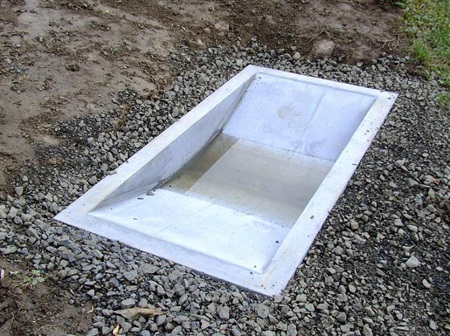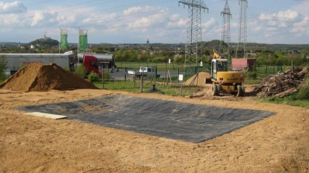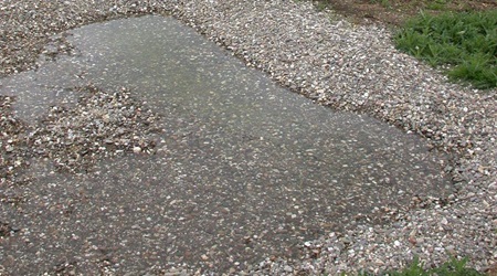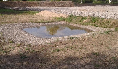 Auch mit Teichfolie lassen sich für ein paar Jahre gute Kreuzkrötengewässer anlegen. Hier muss noch eine Abdeckung mit einer dünnen (ca. 2-3cm dick) Schicht Rollkies (z.B. 8/16 oder 8/32) erfolgen.