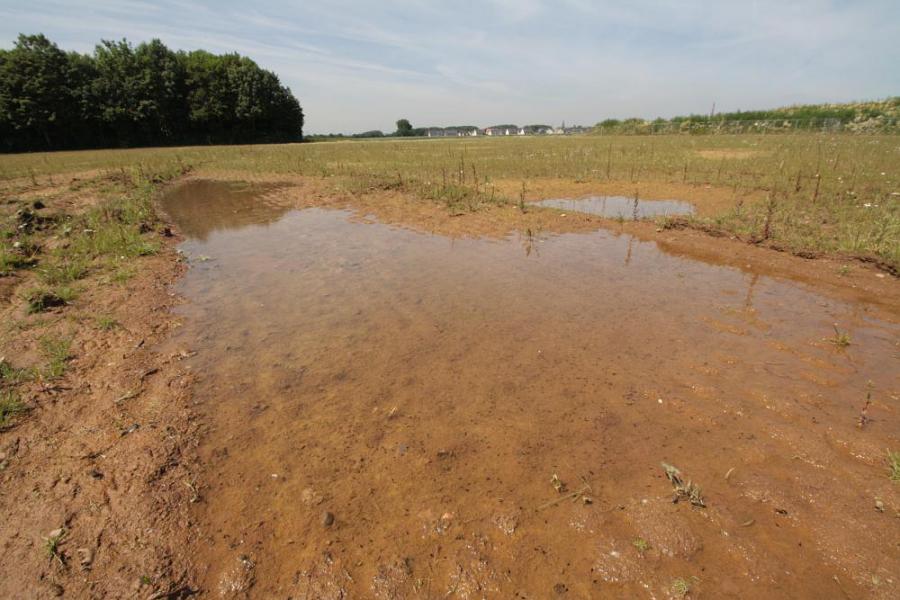 Natürliche Gelbbauchunkengewässer sind meist flach und nur wenige Quadratmeter groß. Die kann man in Steinbrüchen und Tongruben mit sehr geringem Aufwand nachmachen.