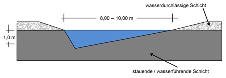 Wechselkrötengewässer sollten etwas tiefer als die nebenstehenden Kreuzkrötengewässer sein, da die Kaulquappen länger brauchen um sich zu entwickeln. Aber auch hier müssen die Ufer flach sein. Wir empfehlen eine Steigung von flacher als 1:5.