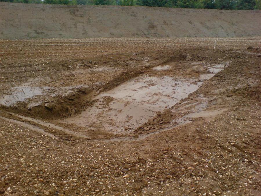 Die Anlage von Kreuzkrötengewässern ist meist mit wenig Aufwand verbunden. Innerhalb kürzester Zeit ist mit einem üblichen Bagger in einer dichtenden oder wasserführendenden Schicht eine geeignete Grube ausgehoben.